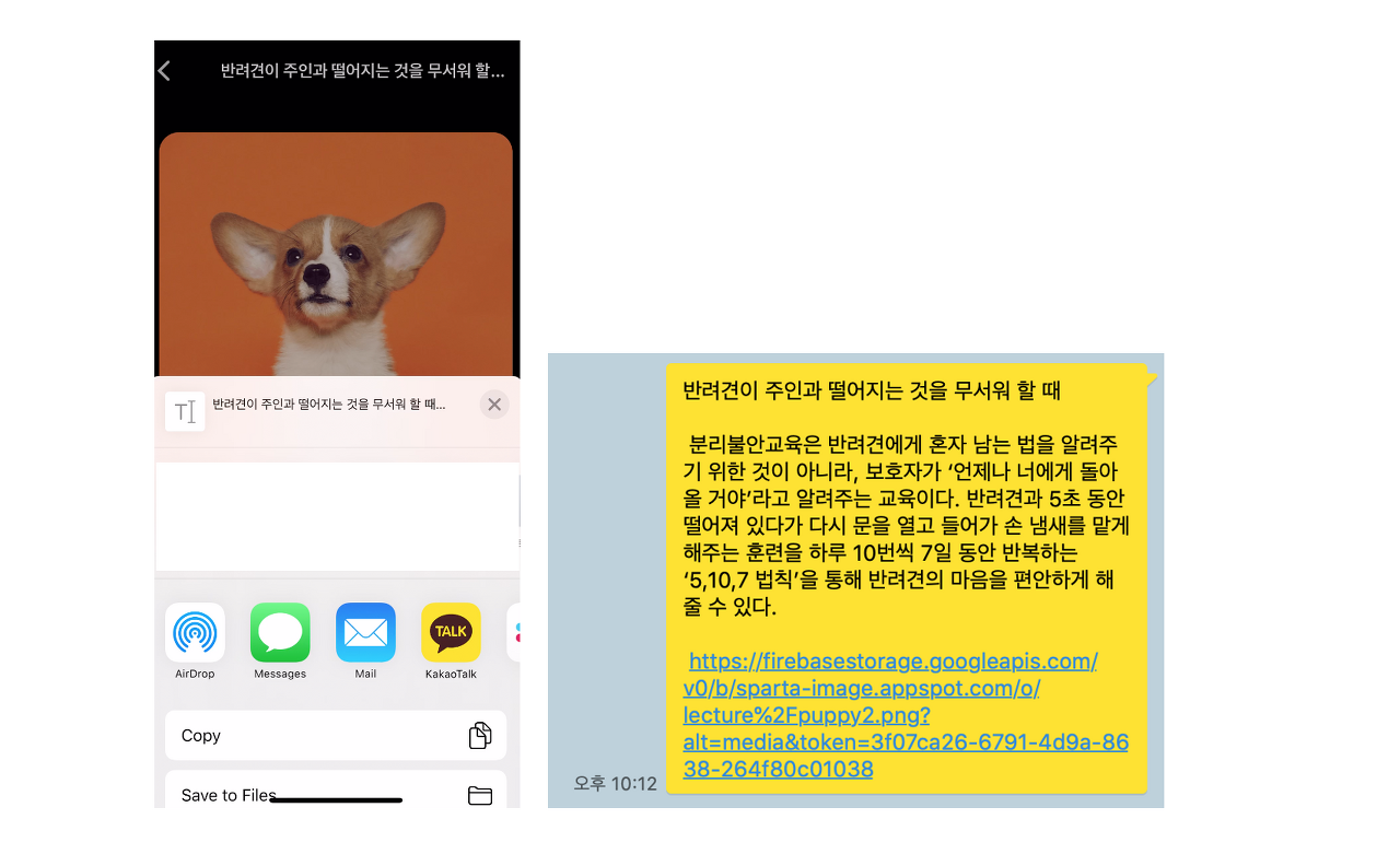 Share 기능은 설치 할 라이브러리 없이, react-native 에서 기본적으로 제공해주는 공유 기능을 사용한다.