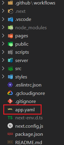gcloud 초기화로 인증을 모두 마치게 되면 app.yaml 파일을 프로젝트 폴더의 root(폴더 최상단)에 세팅해준다.