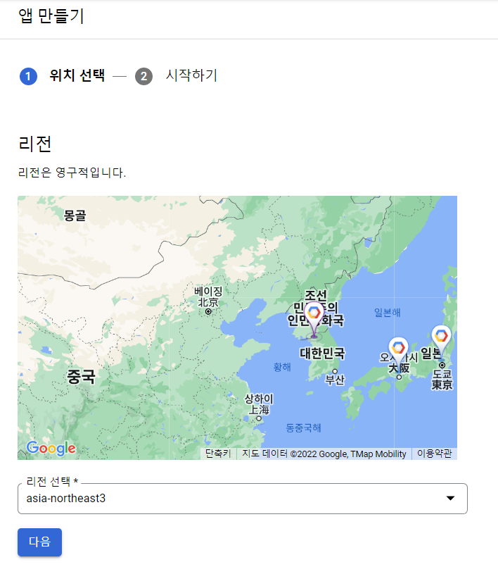 서울로 위치를 설정해준다. (asia-northeast3) 서울 없으면 일본으로.
