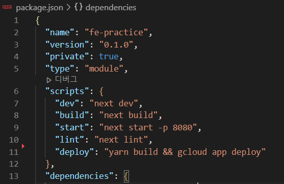 이제 현재 프로젝트를 배포할 때 실행 명령어를 package.json에 설정해준다.