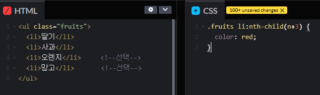 - E 가 형제 요소 중 n번째 요소라면 선택 (n키워드 사용 시 0부터 해석)