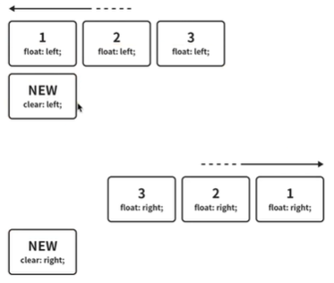 - float으로 띄운 요소들을 clear 하지 않으면 새로운 요소4를 추가했을 때, float을 통해 수평으로 쌓인 요소들과 겹쳐진 위치에 생성되게 된다.