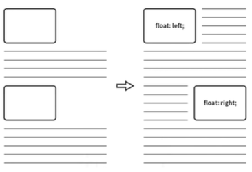 - 기본적으로 요소는 위에서 아래로 수직으로 쌓이게 된다. 하지만 float을 이용한다면 수평 정렬이 가능하다.