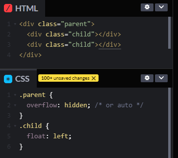 예를 들어 float 속성이 새로운 요소가 자식요소로 들어가게 될 경우 clear가 적용되지 않는다.