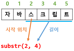 substr(시작위치, 길이) 또는 substr(시작위치)