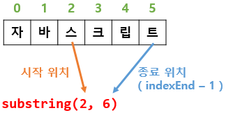 substring(시작위치, 종료위치) 또는 substring(시작위치)