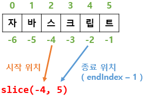 slice(시작위치, 종료위치) 또는 slice(시작위치)