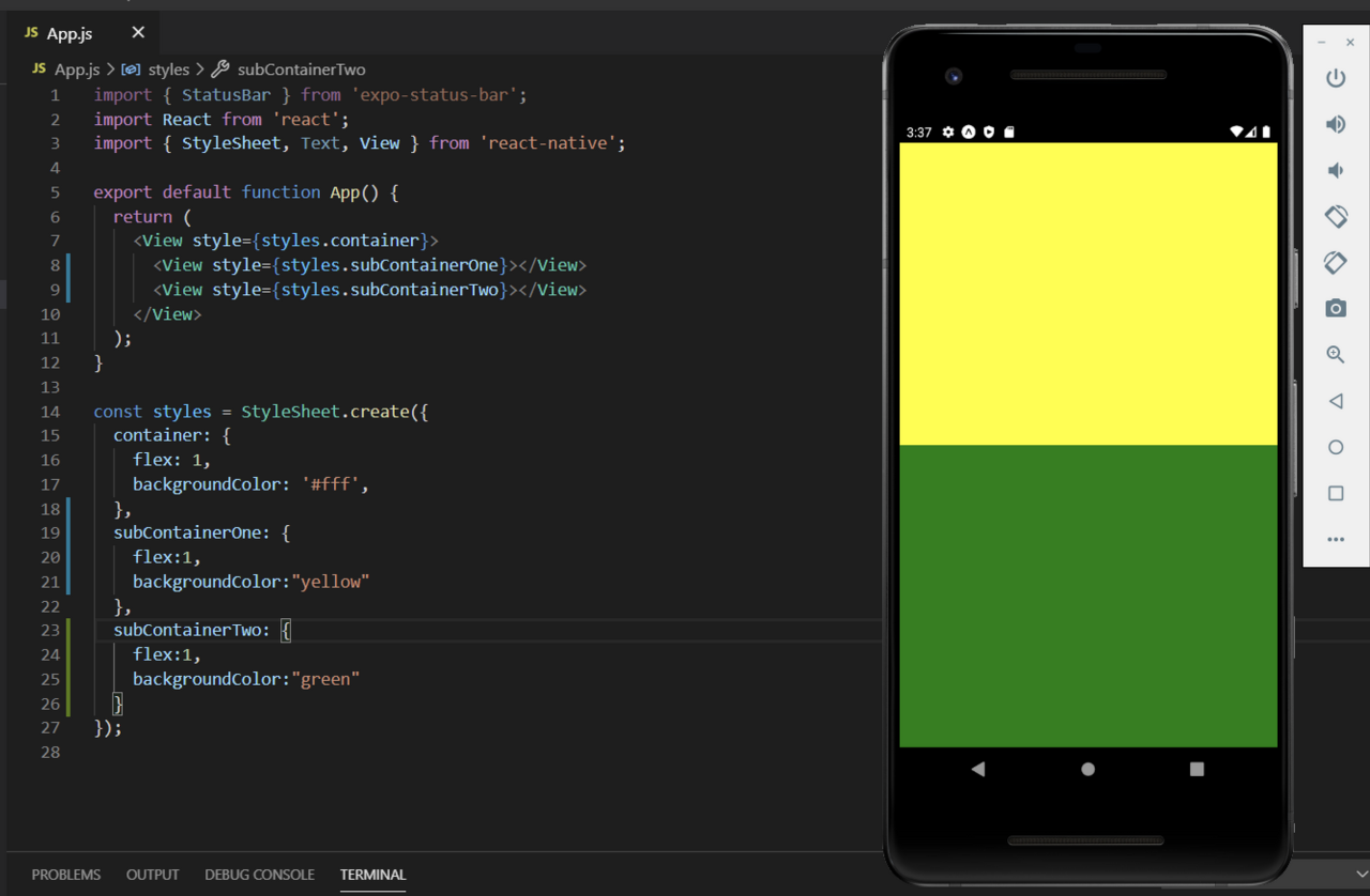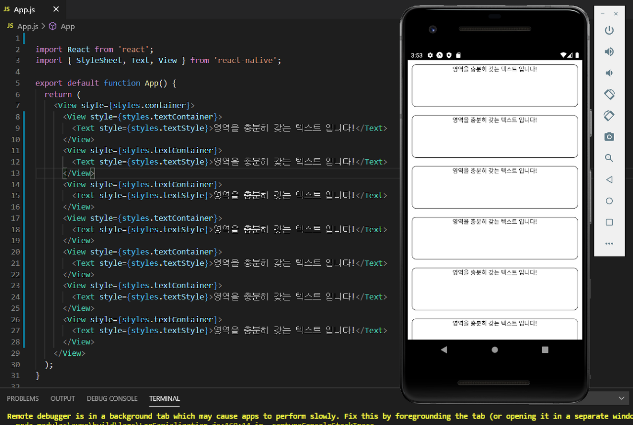 //View 엘리먼트 밖에 StatusBar가 나와 있으므로 엘리먼트 전체를 감싸는 엘리먼트가