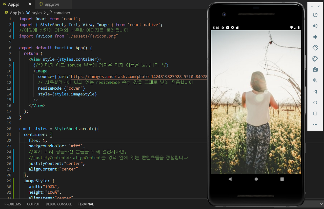 - app.json: 앱의 이름, 앱의 출시 버전, 앱이 휴대폰에 설치될 때 보여질 아이콘, 앱이 켜질 때 보여지는 스플래시 스크린 화면, 안드로이드 또는 IOS 각각의 광고 설정 등 앱이 가지는 기본 정보들을 설정하는 파일이다.