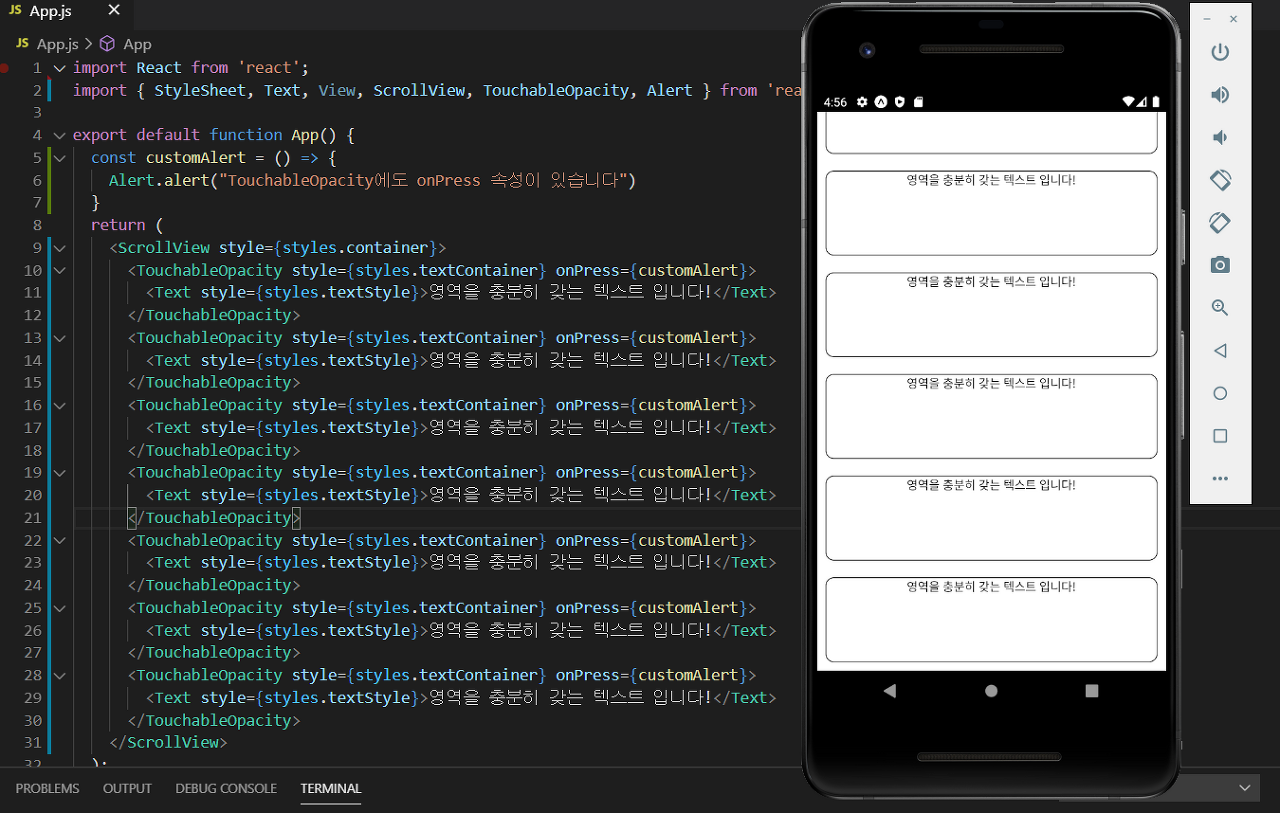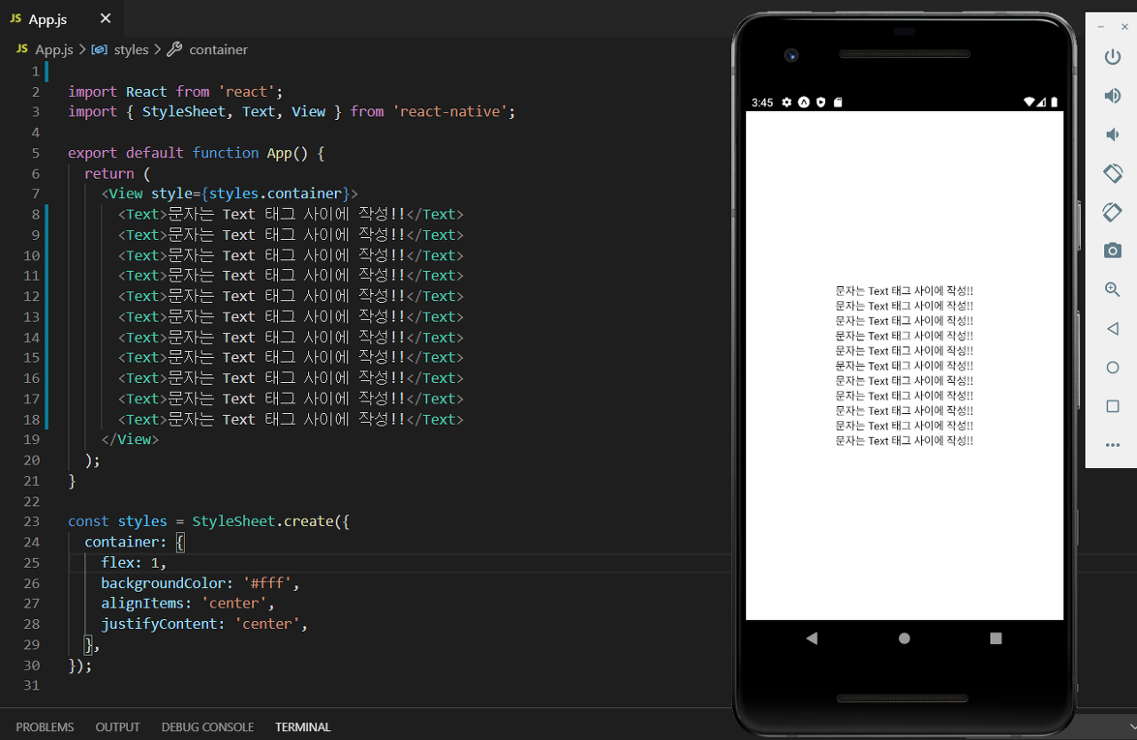 앱에 글을 작성하려면 반드시 사용해야하는 엘리먼트이다.