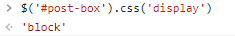 $('#post-box').css('display'); // 'block'