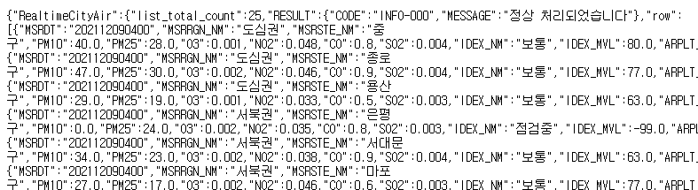 <h2>1. 서울시 OpenAPI(실시간 미세먼지 상태)를 이용하기</h2>