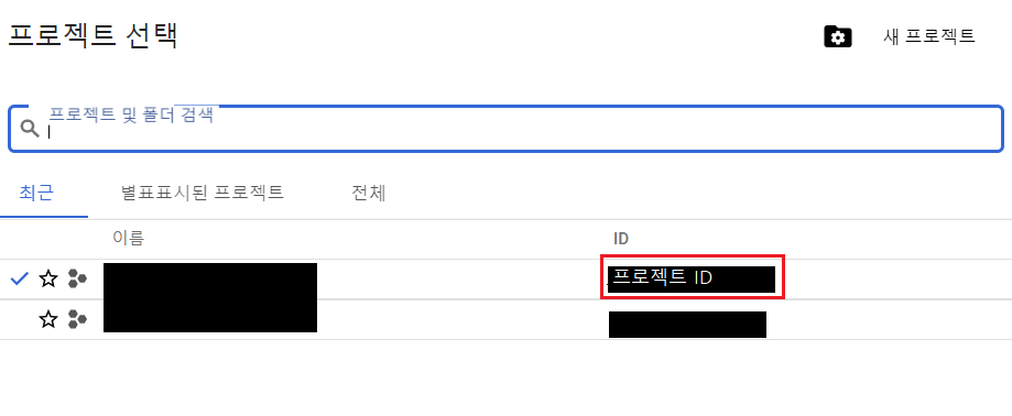 프로젝트 아이디는 말 그대로 프로젝트 선택창에 나오는 아이디이다.
