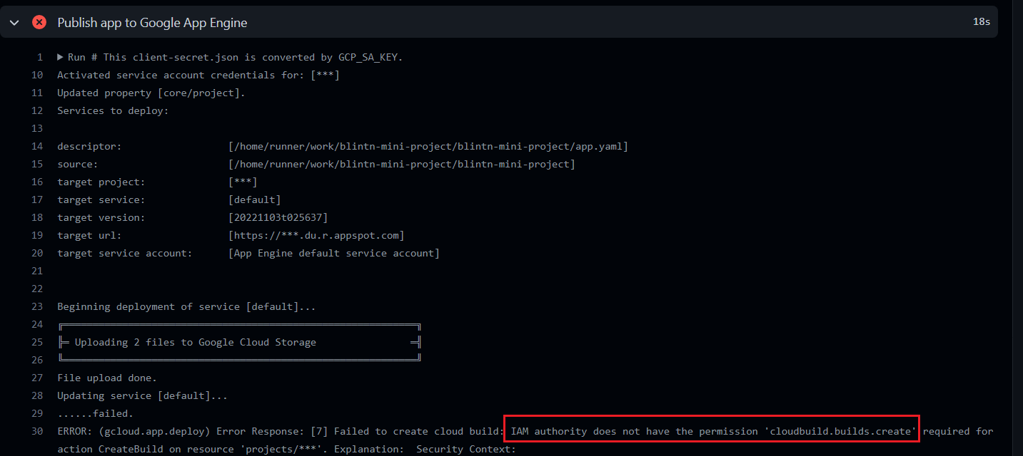 - 그중 Marketplace 내 app engine 관련 가장 많은 star 를 받은것을 참고해서 만드는 것을 추천한다.(https://github.com/marketplace/actions/publish-app-to-google-app-engine)