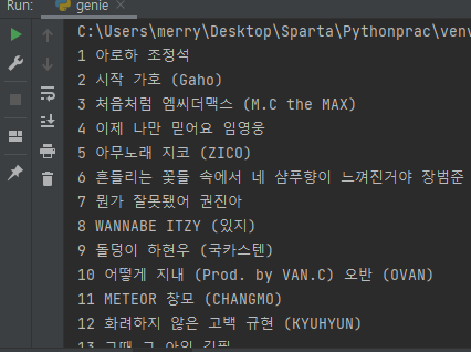 [3주차] 지니뮤직 Top50 스크래핑하기