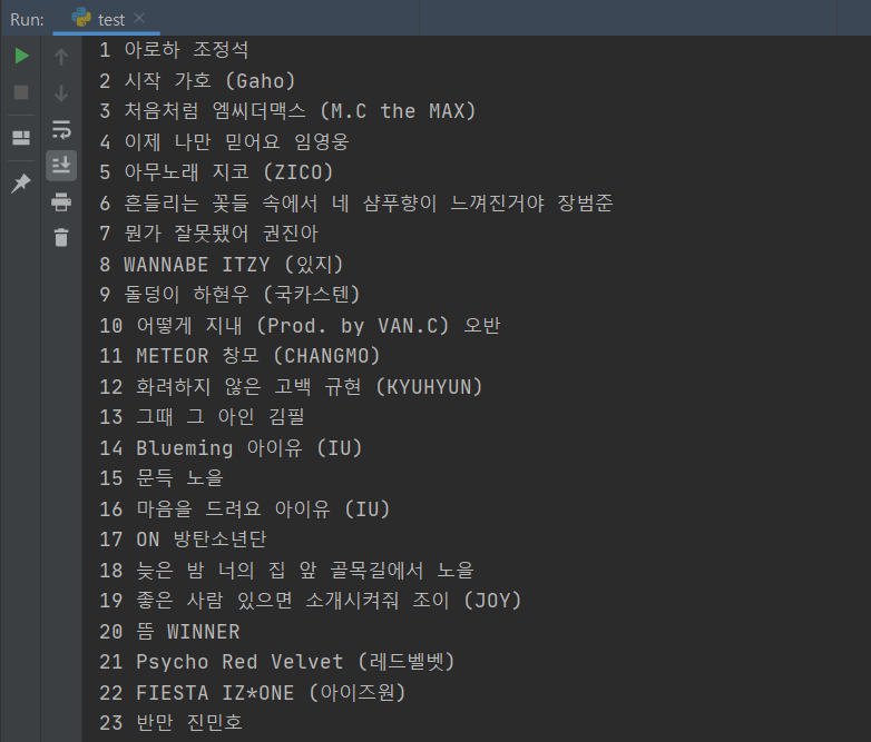 순위와 곡제목이 깔끔하게 나오지 않을 것이다. 옆에 여백이 있다던가, 다른 글씨도 나온다던가 등..