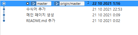 커밋메세지까지 작성하고 커밋한 후에 History에 와서 보면, master와 origin/master가 있는 것을 볼 수 있다.