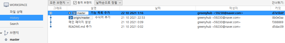 - master : 내컴퓨터 - 기능 목록 추가까지 업데이트 되어있음 (GUI로 마지막에 커밋한 것)