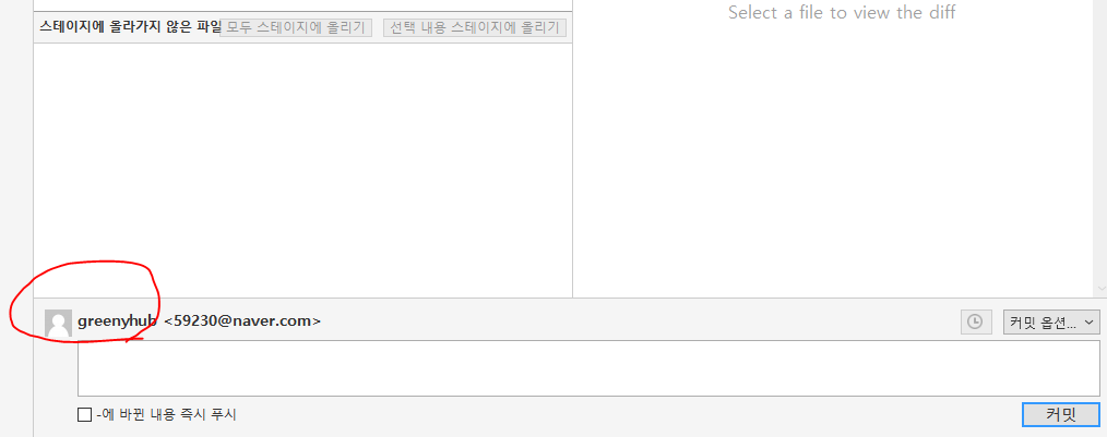 *아이디와 계정이 본인의 깃허브 계정이 추가되어있지 않은 경우